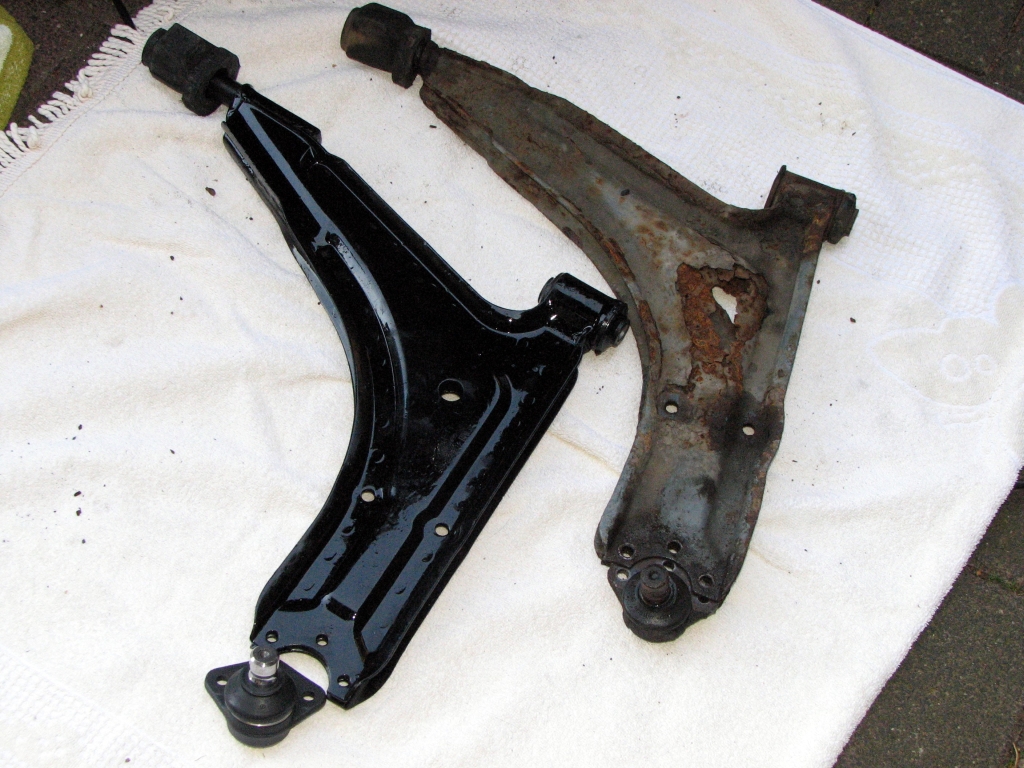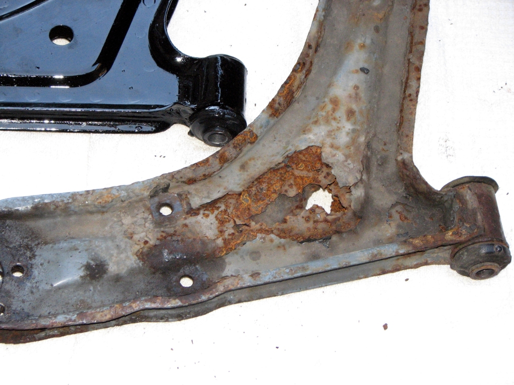 Ob das Ersatzteil noch aus der Lopez-Ära stammte, ist im Nachhinein nicht mehr zu belegen. Jedenfalls ist dieser total verrottete Querlenker nur halb so alt, wie der originale auf der linken Seite. Und der steht noch heute, nach fast 20 Jahren, in tadellosem Zustand da.