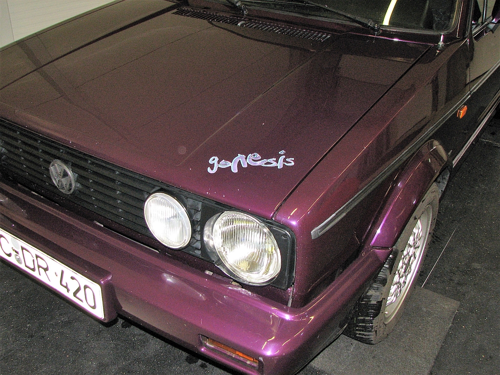 Der "Genesis"-Aufkleber sei nicht vergessen: Zum Glück hatten wir vor langer Zeit (voriges Jahrhundert) ein Exemplar Aufkleber eingelagert - man weiß ja nie. Er klebt noch wie damals und ziert jetzt die frisch gewachste Motorhaube des Cabrios - hoffentlich für die nächsten 28 Jahre "Genesis"-Fahrfreude.