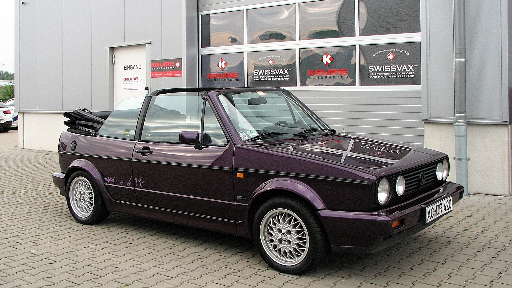 Wir ersuchen "den Freundlichen" in Düsseldorf um Rat. Der ist auch gleich auf Zack und zeigt uns sein Ausstellungsstück: Golf 1 Cabrio Sondermodell: Genesis.
