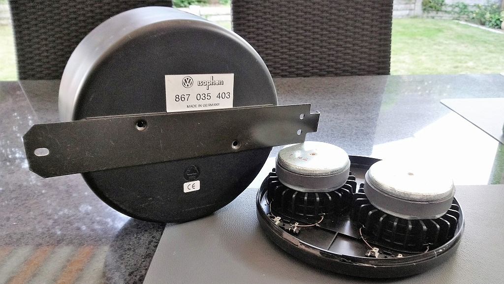 September 2020 - Im Laufe der Zeit geben die hinteren Lautsprecher ihren Geist auf (meist schon nach ein paar Jahren): Die Membranen reissen und die Schwingspulen scheuern sich in ihren Luftspalten wund. Oder die dünnen Litzen an den Membranen faulen einfach weg. Ergebnis: Genesis ohne Sound.