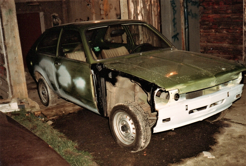 Wir kaufen ein mittleres Grün vom BMW, ein dunkleres Grün vom Passat und bereiten den Wagen für die Lackierung vor: Abmontieren, was irgendwie abschraubbar ist und abkleben, was dran bleiben muss - aber gründlich. Lackschäden abspachteln, schleifen und alten Lack anrauen; dann kann es losgehen - mit der neuen elektrischen Spritzpistole. Zuerst wird das helle metallic Grün möglichst gleichmäßig auf dem Blech verteilt. Anschließend sprühen wir die dunkle Farbe in Höhe der Stoßstangen nass in nass rund ums Auto - nicht schlecht. Nach dem Trocknen kommen zwei/drei Sprühgänge Klarlack drauf und wir haben unser erstes Auto selbst lackiert. Der sieht jetzt richtig schick aus und kann der Dame des Hauses als künftiger Scherpa übergeben werden. Der Schrottplatz kann noch drei Jahre warten.