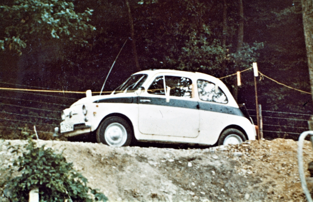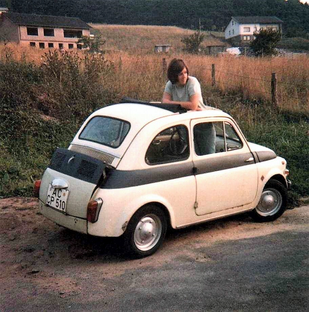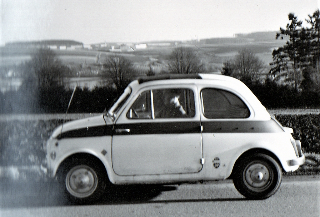 Irgendwann in 1966 ist es endlich soweit: Vater Paul hat einen FIAT 500 D an der Hand, den ich für DM 525,-- kaufen kann. Na ja, 500 Märker habe ich ja, und die fehlenden 25,-- spendiert er. Das Auto ist praktisch nackt, also ganz normal eben. So wie es halt aus dem Laden kommt. Da muss doch umgehend eine Behandlung mit "RallyeFormin" (mein Ausdruck für "wir machen das Auto schöner") passieren.
